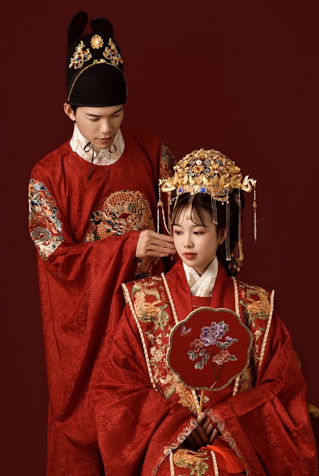 🌟 关键点: 节日穿搭可大胆使用红金配色,选择工艺复杂的妆花、缂丝面料。发型可梳传统牡丹头或灵蛇髻。