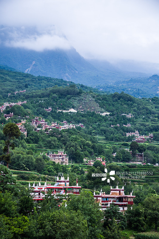 “甲居”,藏语意为“百户人家”——这个坐落在四川丹巴县大金河谷的藏寨群[[1]4,以红白相间的藏式楼阁为笔触,在海拔2000米的山脊上泼洒出一幅立体画卷。2005年,《中国国家地理》将这里评为“中国最美六大乡村古镇之首”[[9]11,并非偶然:140余栋寨楼依山攀援,炊烟与绿树交织,碉楼与雪峰对话,恍若天神遗落的调色盘[[6]14。